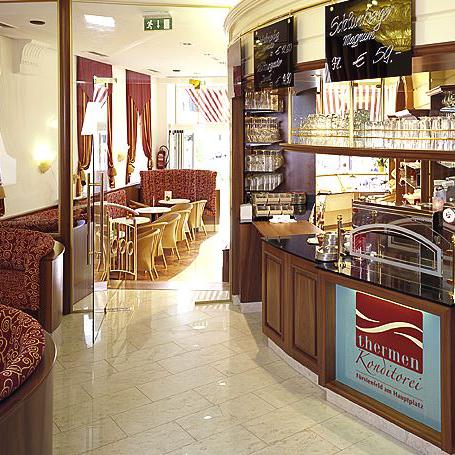 Die Thermenkonditorei lädt durch die schönen und gemütlichen Räumlichkeiten zum Verweilen und Entschleunigen ein. Hier können Sie Ihre Seele baumeln lassen und sich von uns mit köstlichen Mehlspeisen verwöhnen lassen.